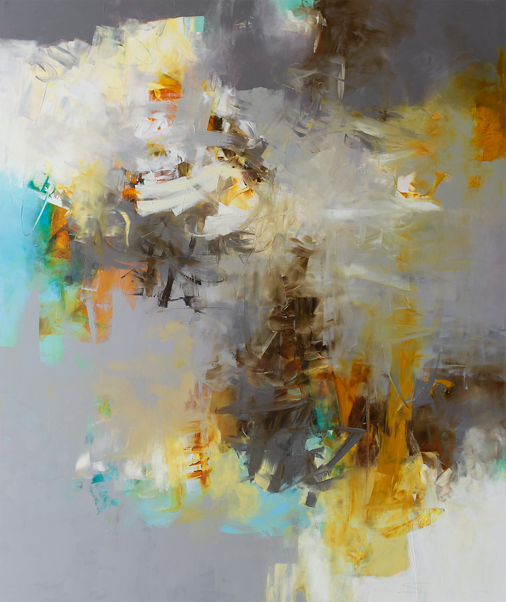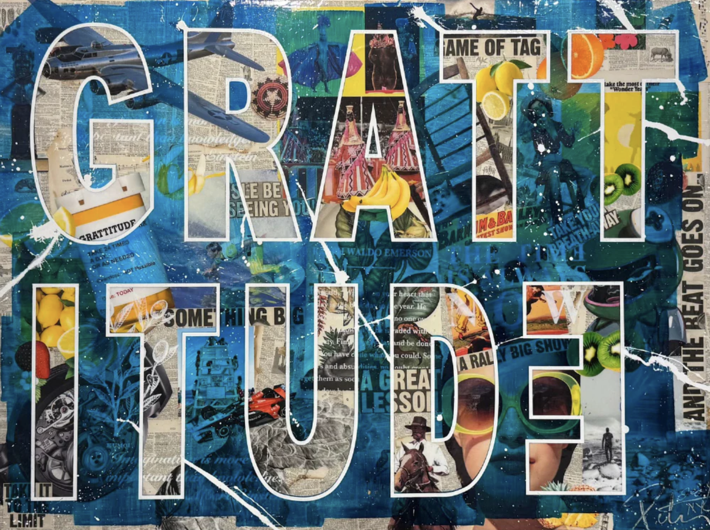 Acrylic paint, collage and mixed media on canvas, 36 x