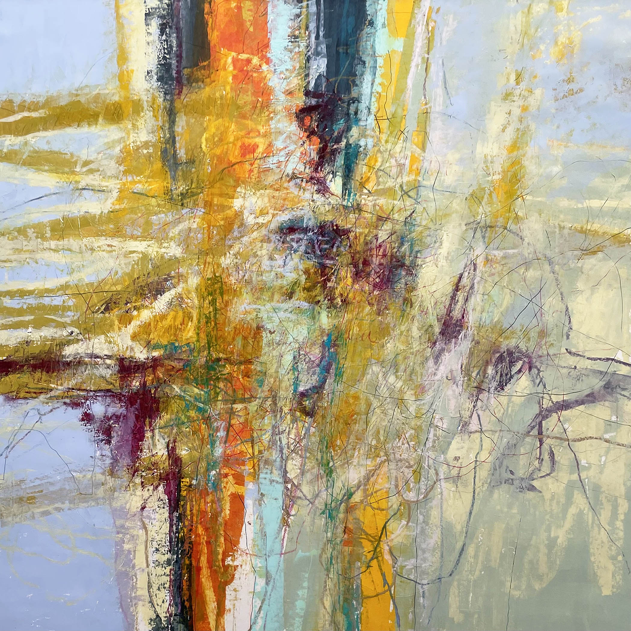 Acrylic paint, collage and mixed media on canvas, 36 x